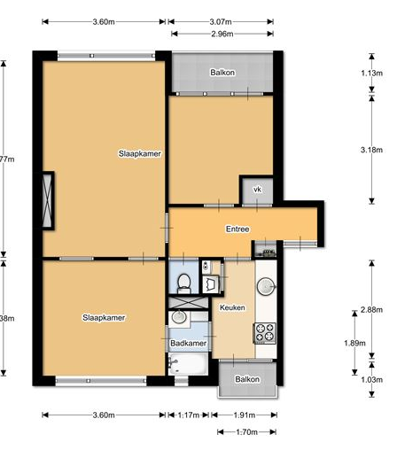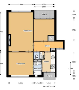 2 slaapkamers, één kamer met een laminaatvloer en een vaste kast en één kamer met een laminaatvloer en een 2e toegang tot het balkon.